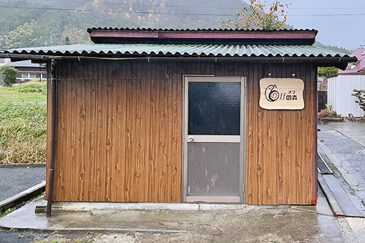 ちょっと国道から入った所にあり、目印がなかったので看板を付けました。久万広域森林組合駐車場から見えます。